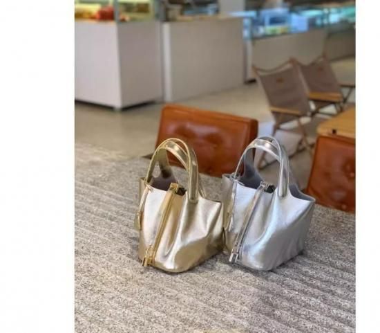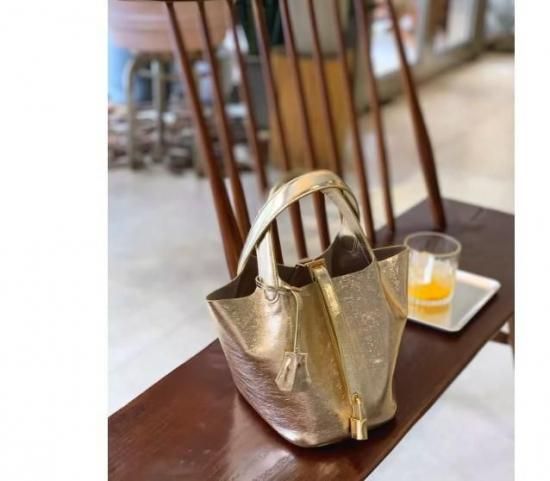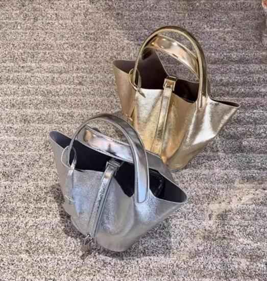 metallic bucket bag